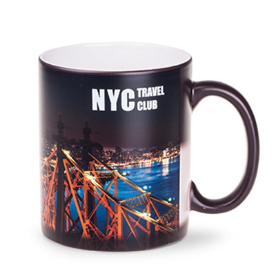Kubek reklamowy o popularnym cylindrycznym kształcie i matowej powierzchni. Model dostosowany do nanoszenia nadruków Magic Mug - projektów pojawiających się wyłącznie pod wpływem ciepła. Matowa zewnętrzna powierzchnia jeszcze lepiej "ukrywa" nadruk kiedy kubek jest zimny. Możliwa realizacja w 24H