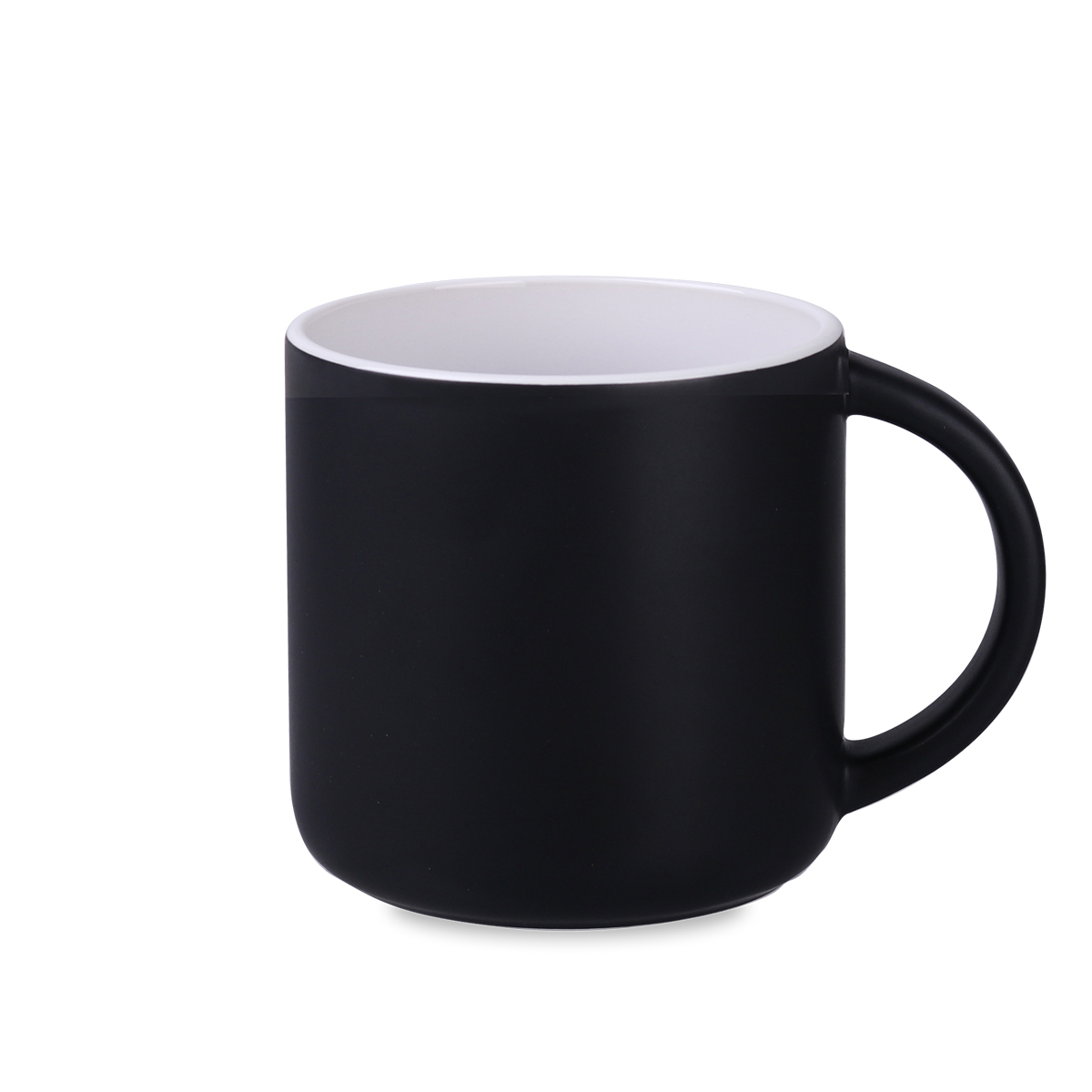 Kubek reklamowy z czarnym, matowym szkliwem na zewnątrz i kolorowym, błyszczącym wnętrzem. Proste, cylindryczne ścianki umożliwiają nanoszenie bardzo dużych i rozbudowanych nadruków reklamowych. Cechą charakterystyczną tego fasonu jest niepowtarzalny kształt uchwytu. Kubek o bardzo dużej pojemności.