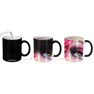 Kubek reklamowy o popularnym cylindrycznym kształcie. Model dostosowany do nanoszenia nadruków Magic Mug - projektów pojawiających się wyłącznie pod wpływem ciepła.