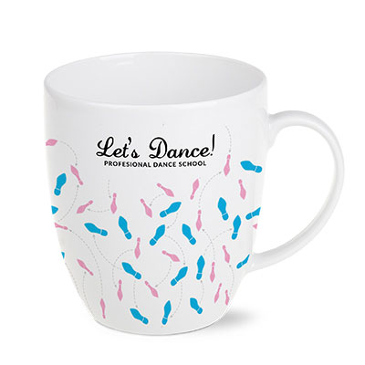 Miły dla oka, obły kubek reklamowy wykonany z wysokiej jakości porcelany.