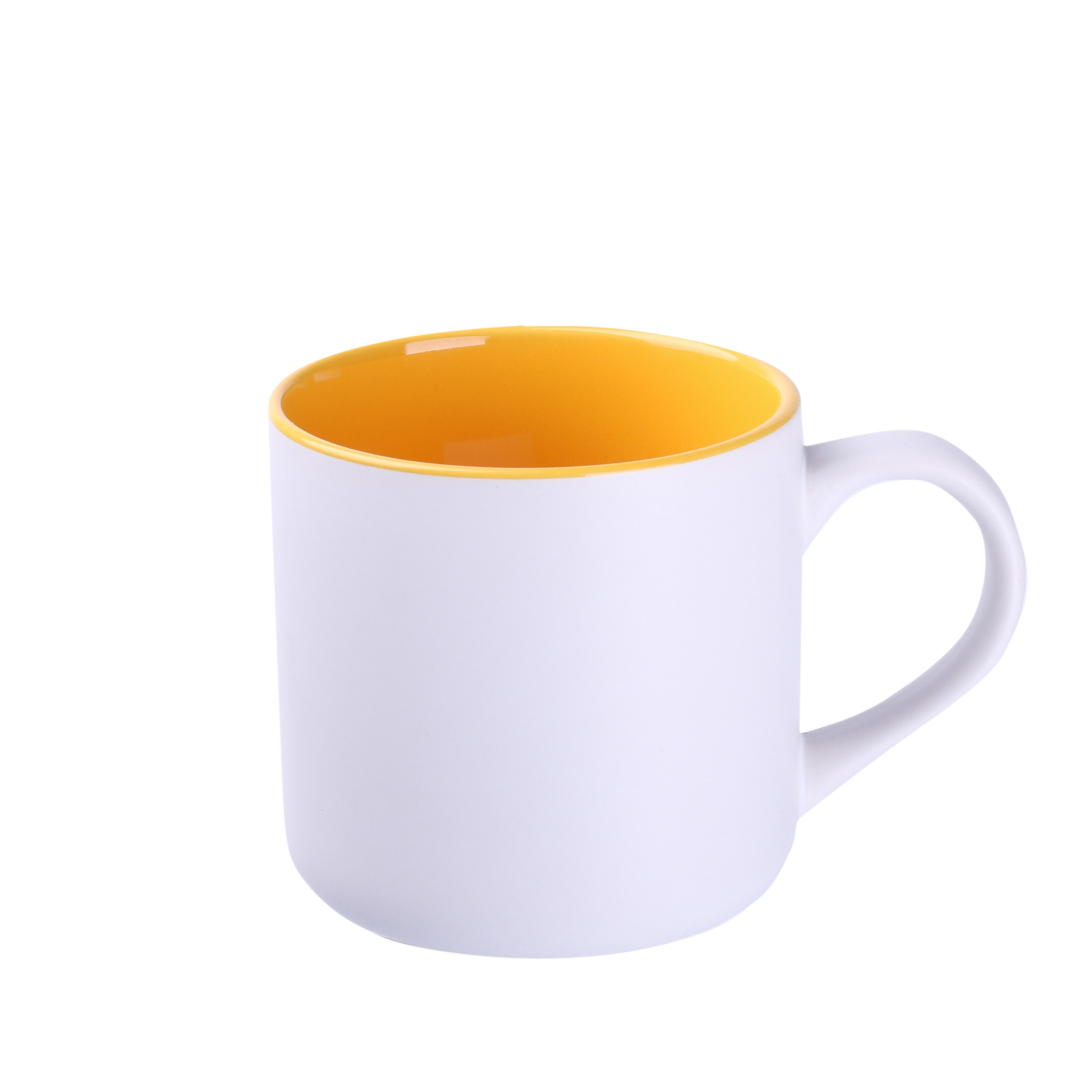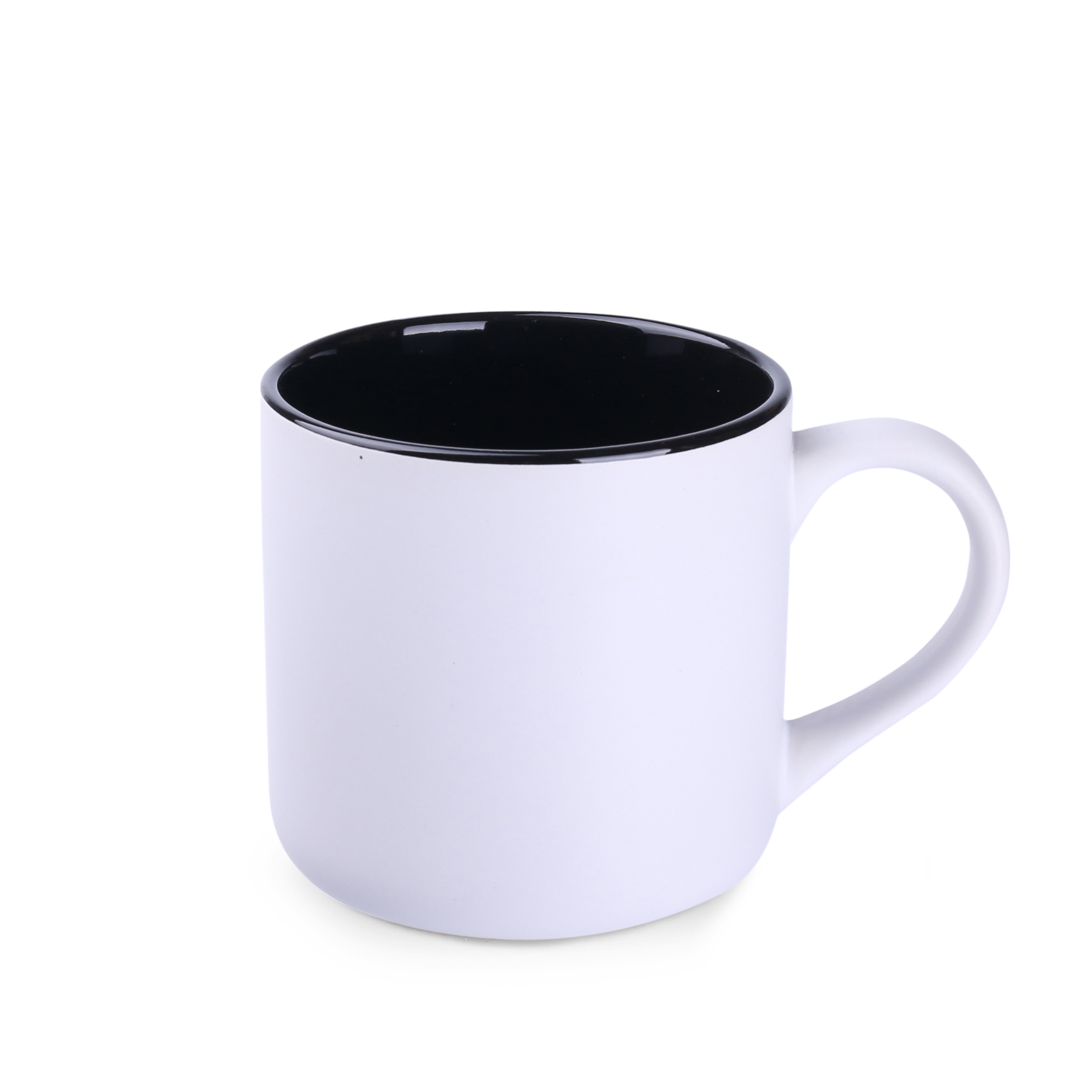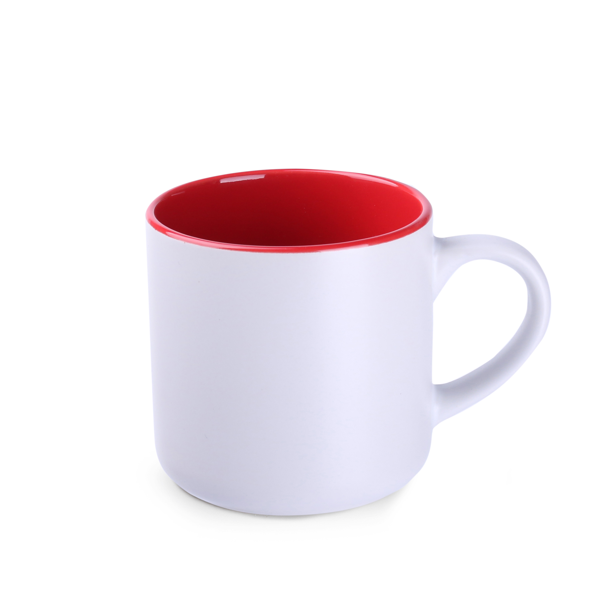 Modny matowy kubek o wnętrzu występującym w sześciu opcjach kolorystycznych. Proste ścianki gwarantują duże możliwości zdobienia.