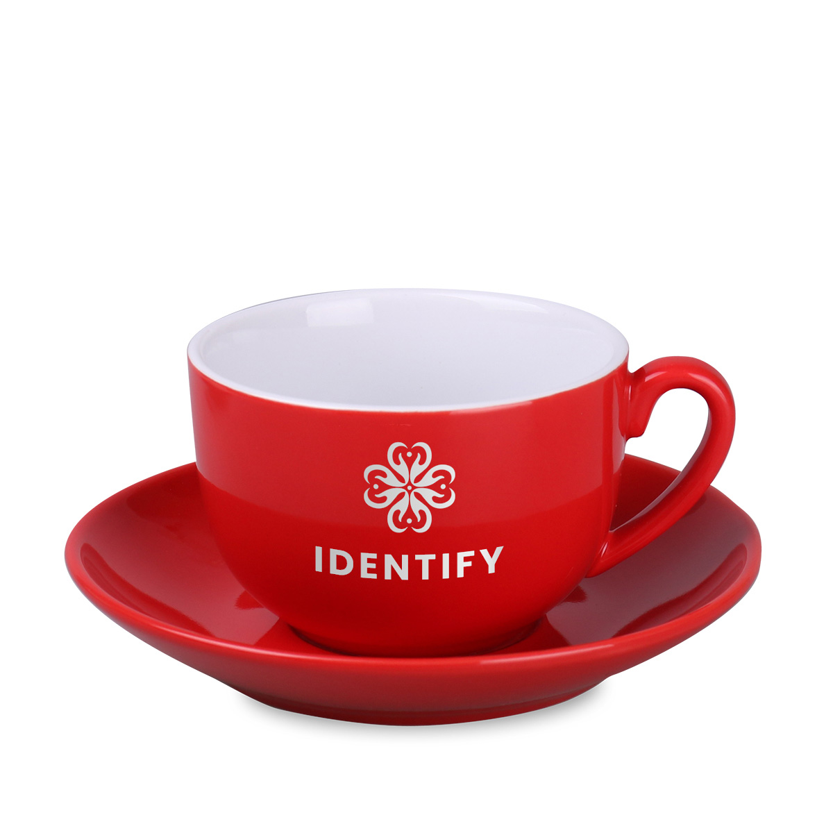 Porcelanowa filiżanka reklamowa z kolorowym szkliwem na zewnątrz i białym wnętrzem. Fason dostępny w wielu wersjach kolorystycznych.